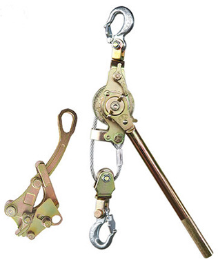 電力施工機具緊線器應用時先把緊線器上的鋼絲繩或鍍鋅鐵線松開,并固定不動在橫擔上,用夾線鉗夾住導線,隨后擰動專用型板手。因為棘爪的防大逆轉功效,慢慢把鋼絲繩或鍍鋅鐵線繞在棘輪扳手滾桶上,使導線縮緊。把縮緊的導線固定不動在絕緣子上。隨后先松開棘爪,使鋼絲繩或鍍鋅鐵線松開,再松開夾線鉗,最終把鋼絲繩或鍍鋅鐵線繞在棘輪扳手的滾桶上。緊線器能夠提升貨運運輸起重吊裝全過程中的安全系數(shù)。